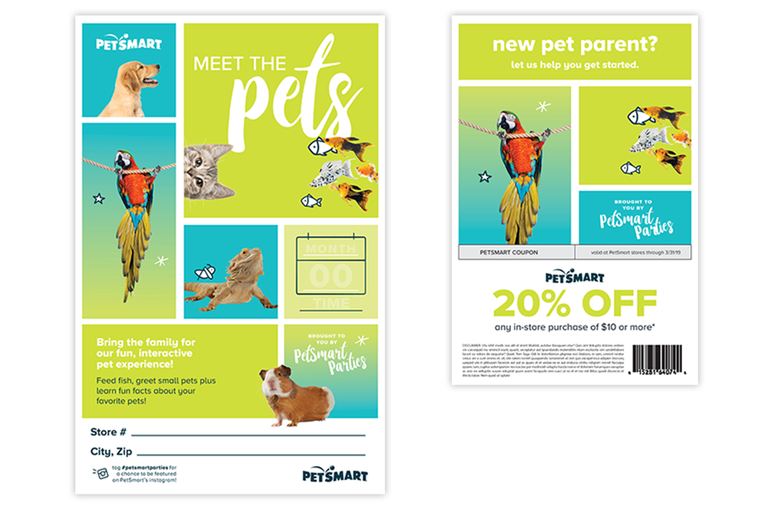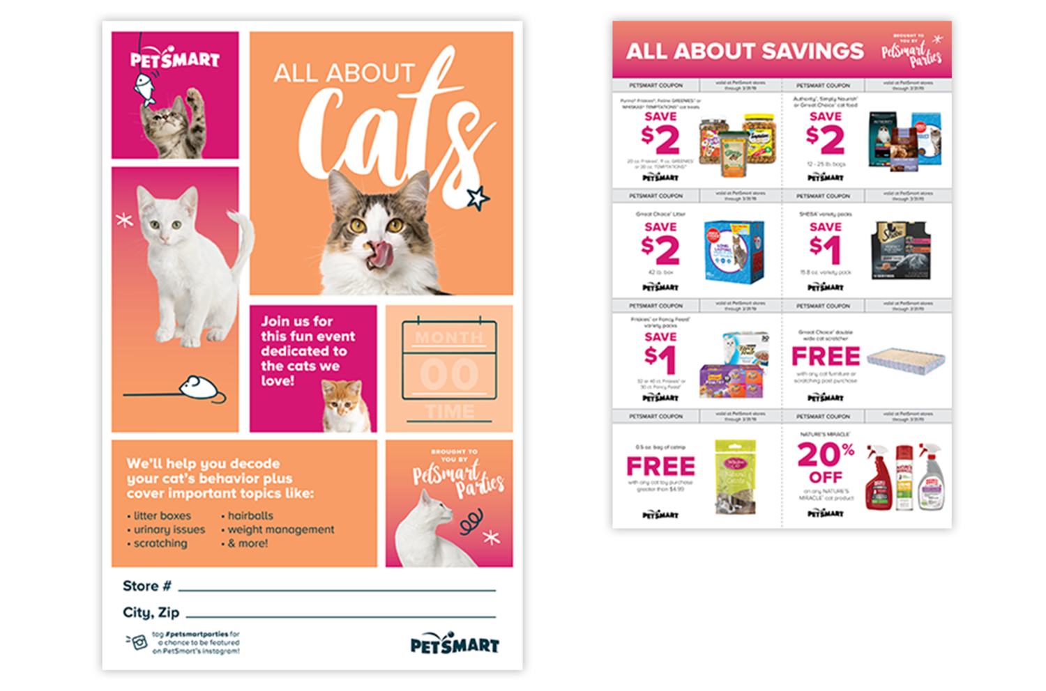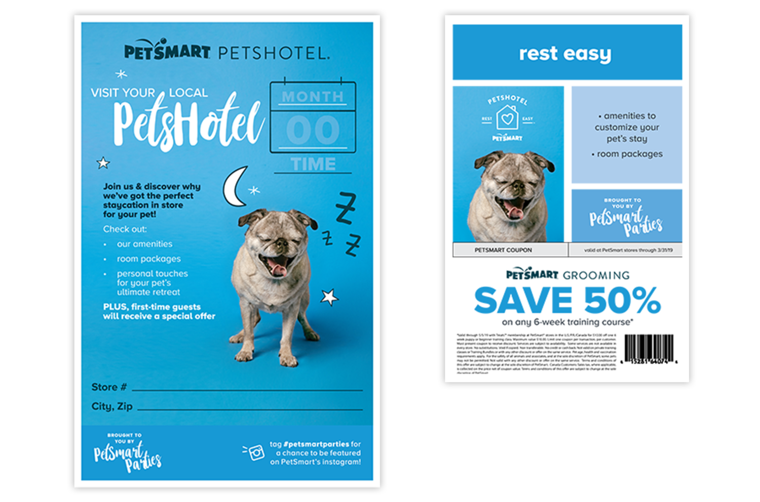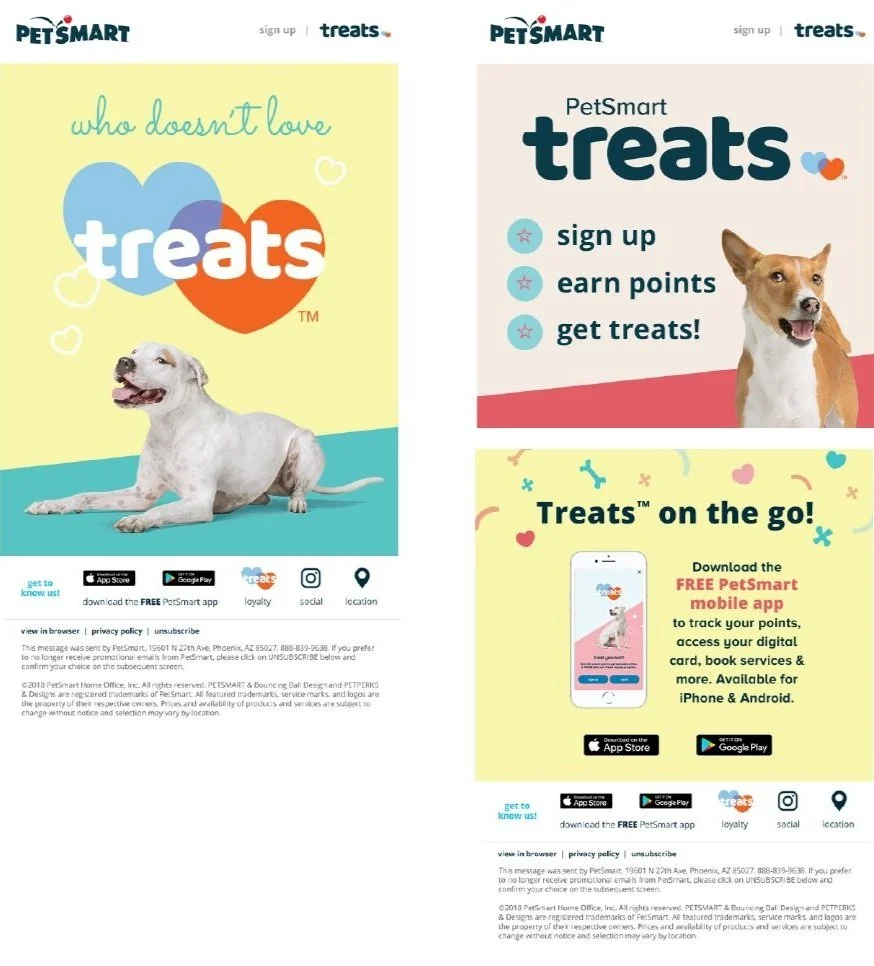 The design of a program logo and style guide, art direction of an in-house photoshoot, and design of corresponding digital and in-store collateral for PetSmart’s newly launched Loyalty program, Treats™.