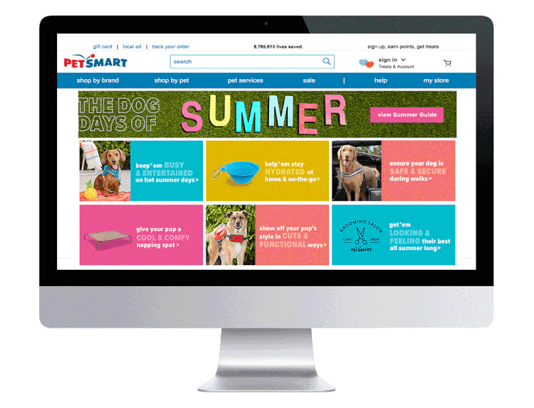 An online an in-store pet retailer dedicated to supporting pet parents in all stages of their pets lives. As a Designer I developed creative strategies for seasonal and brand campaigns, art-directed campaign photoshoots, and designed assets for web, print, in-store signage, email, and more.