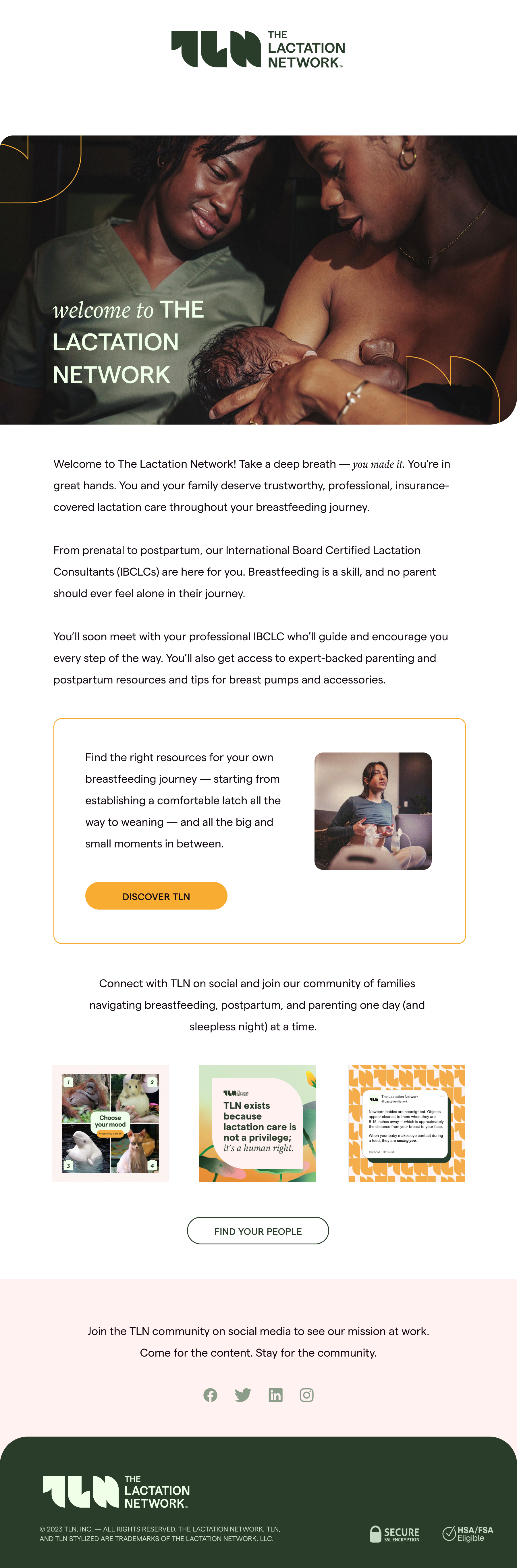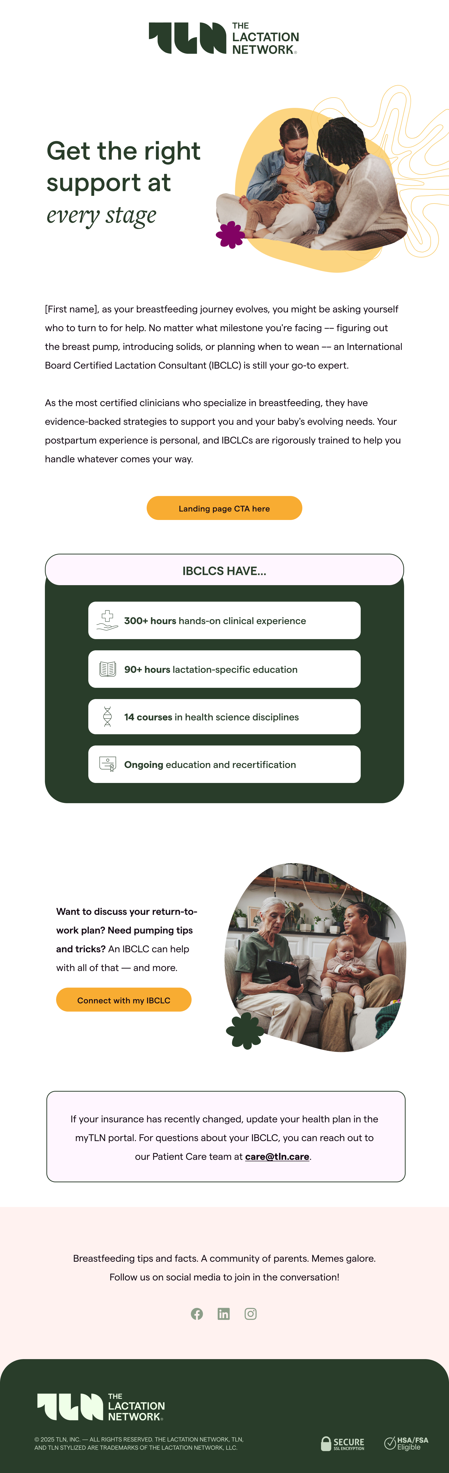 A healthcare brand dedicated to helping lactating parents get insurance-covered breastfeeding support. As The Lactation Network’s Design Lead I own and evolve TLN’s design system, ensuring consistent, elevated visuals across web, paid, organic social, email, print, OOH, and more.