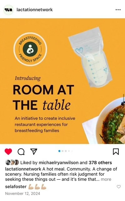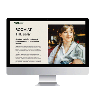 An initiative developed to create community and combat the stigma of breastfeding in public spaces - we designed a program to help families feel more comfortable feeding their babies at restaurants - and to help restaurants support these families.